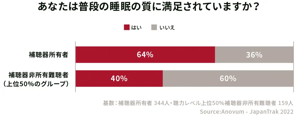 睡眠の質における満足度は前者の方が24ポイント高くなっています。