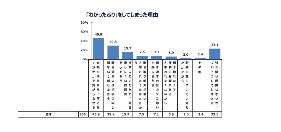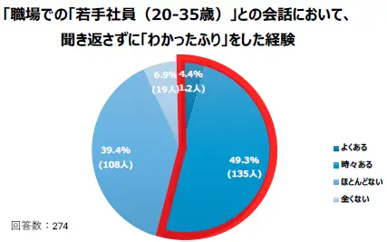 - Topics③:聞き取れなかったベテラン社員の約54%が、聞き返さず「分かったふり」をした経験あり