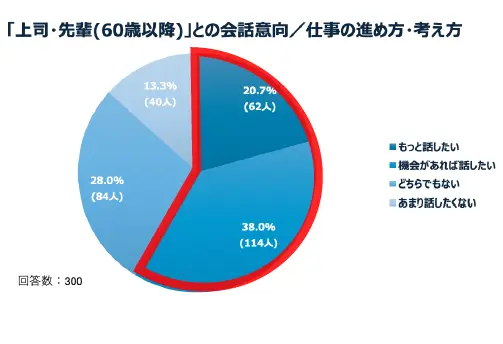 - Topics①:若手社員の約6割が「ベテラン社員と話したい」と回答