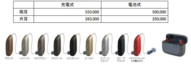 ● メーカー希望小売価格 *充電器33,000(税込)含む *補聴器は非課税