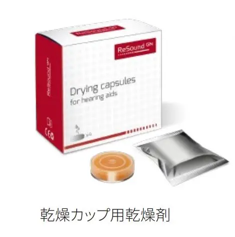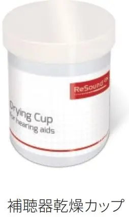 補聴器乾燥カップ(別売)に入れて補聴器を乾燥させる。1個で約1ヶ月使用可能。