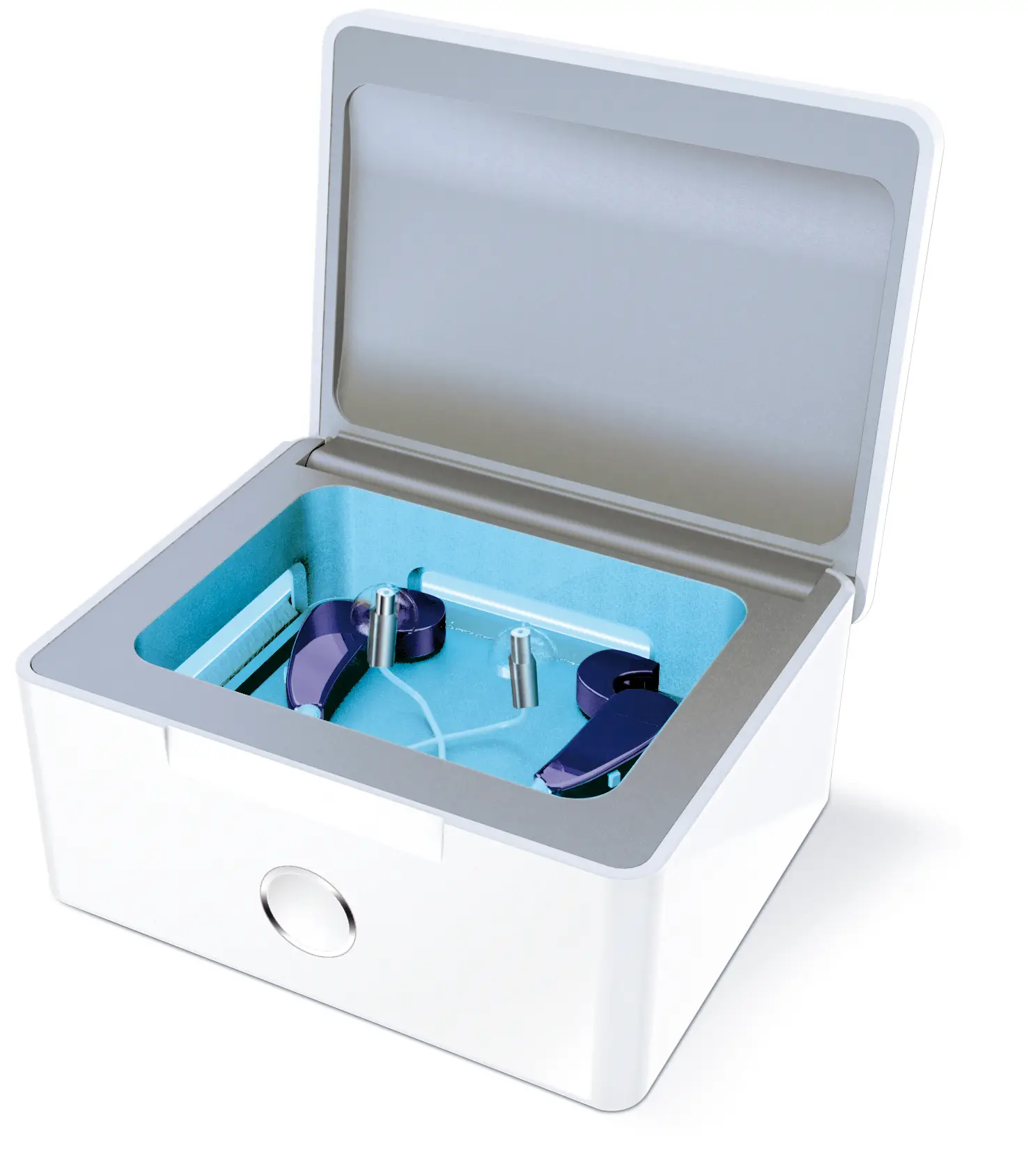特殊製法の四角形状UVランプが全方向から紫外線を照射。補聴器をしっかり除菌。