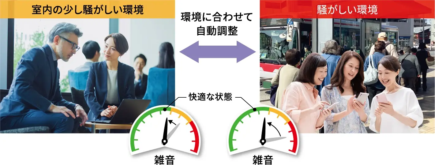 環境に応じて、自動的に聞きやすい音量に調整します。