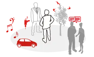 環境適応雑音抑制とは、その時いる場所の音環境に応じて補聴器が雑音抑制の効き具合を好みに合わせて自動調整する機能です。 ― ポイント! ― 大きく音環境が変わる場合でも、補聴器が全自動で雑音を抑制してくれるので、疲れにくく、快適に会話を聞き取ることができます。