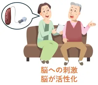 補聴器で聞こえを補う為には、聴力に応じた補聴器を選択し適切な調整とトレーニングを行う事が必要です。補聴器からの音によって脳を活性化する事が可能です。会話は、耳で言葉を聞き脳で考えて言葉を発するというサイクルです。